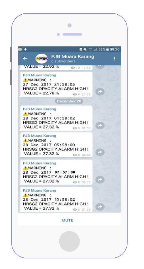 Sample of online notification via Telegram for